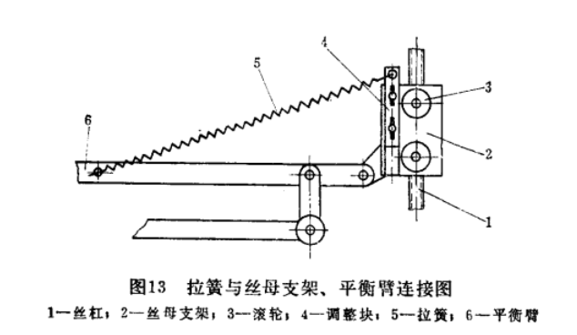 如果拉簧的拉力過(guò)小,拉簧就處在被平衡臂和手柄等重量的拉伸狀態(tài),使平衡臂的立臂向外或向立柱方向滑動(dòng)(圖14b)。